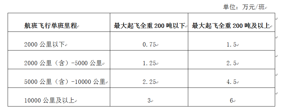 二是不载客国际货运航班奖励标准的确定。按航班飞行里程和最大起飞全重分为八档,0.75万元—6万元/班(具体奖励标准见下表)。奖励金额按照疫情防控期间航空公司实际执行不载客国际货运航班的航班数量和规定的标准进行核定。