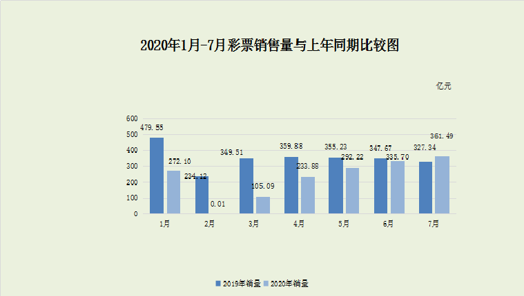 1-7月累计,全国共销售彩票1600.49亿元,同比减少852.81亿元,下降34.8%。其中,福利彩票机构销售747.24亿元,同比减少380.78亿元,下降33.8%;体育彩票机构销售853.25亿元,同比减少472.02亿元,下降35.6%。