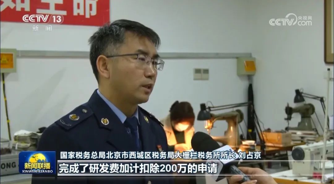 国家税务总局北京市西城区税务局大栅栏税务所所长刘占京:(它)符合研发费加计扣除的政策,确保企业在汇算清缴之前完成了这研发费加计扣除200万的申请。